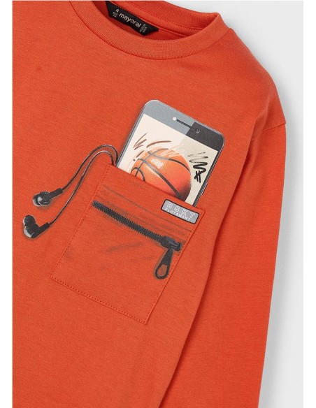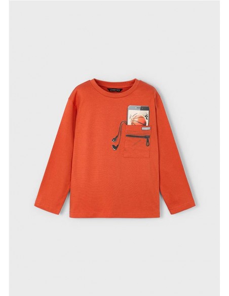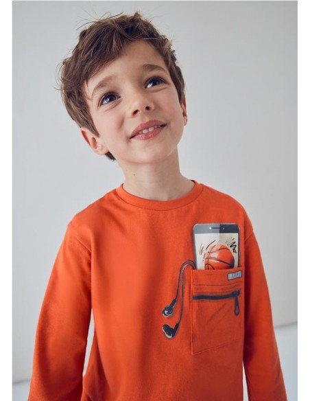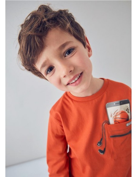 Camiseta de manga larga para niño. Cuello redondo. Tejido 100% algodón. Elementos de adorno: serigrafía (print).