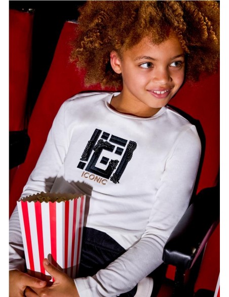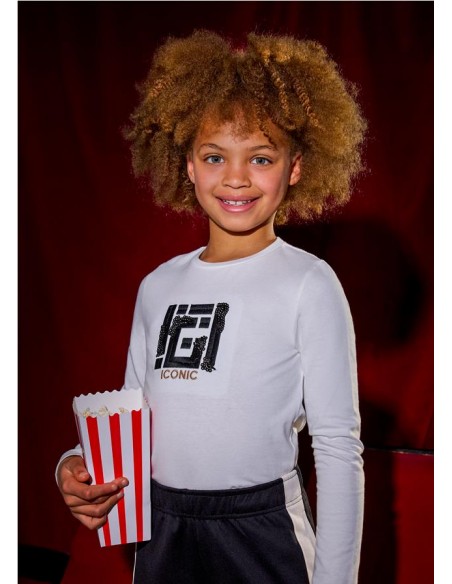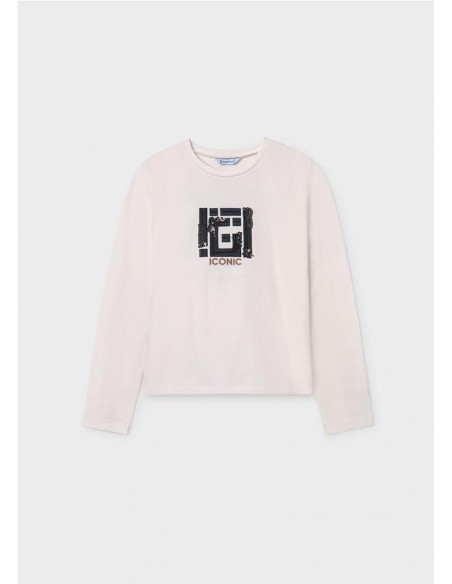 Camiseta de manga larga para chica. Cuello redondo. Suave tejido de algodón elástico. Elementos de adorno: lentejuelas.