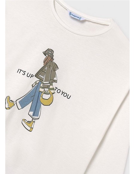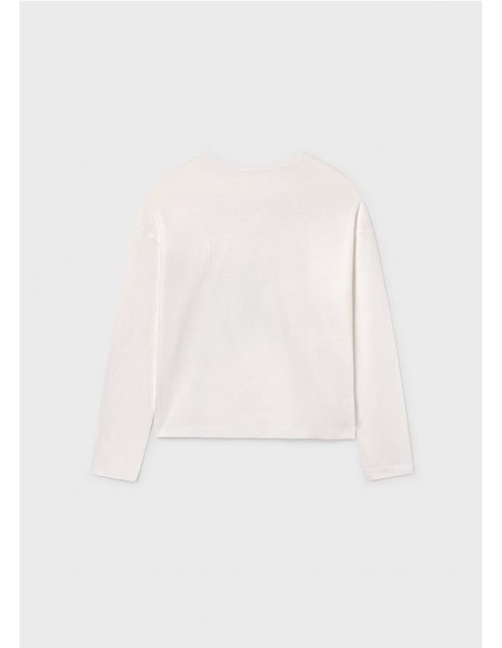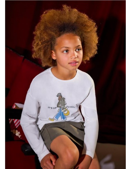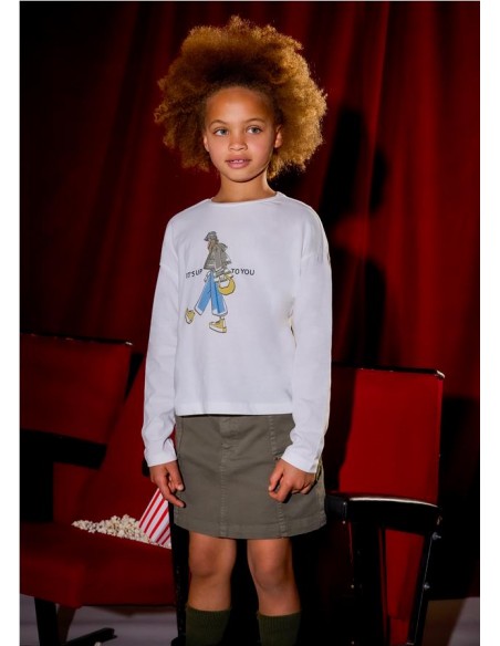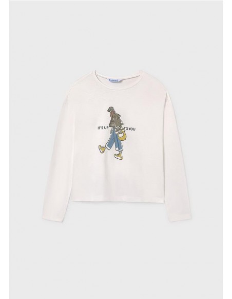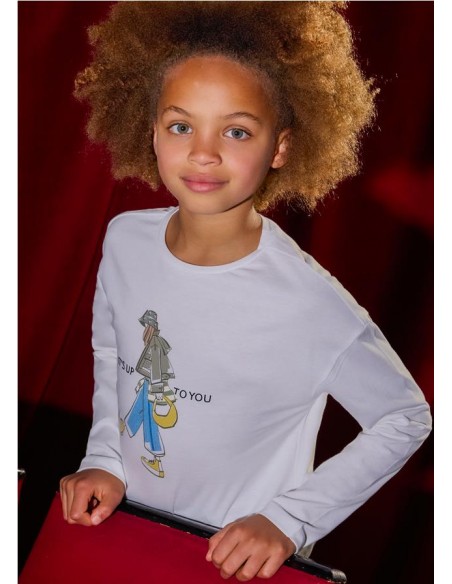Camiseta de manga larga para chica. Cuello redondo. Elementos de adorno: serigrafía (print).
