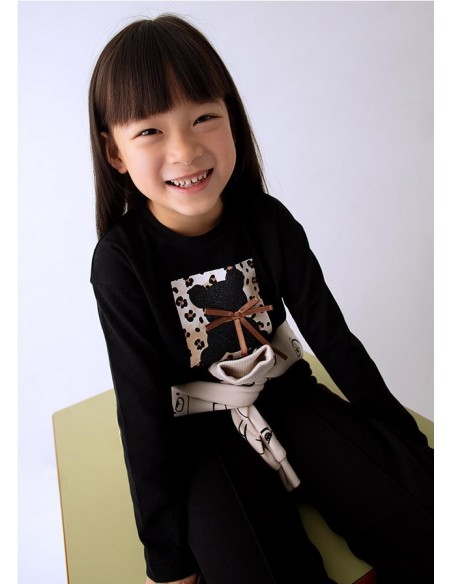 Camiseta de manga larga para niña. Tejido 100% algodón. Elementos de adorno: bordado.