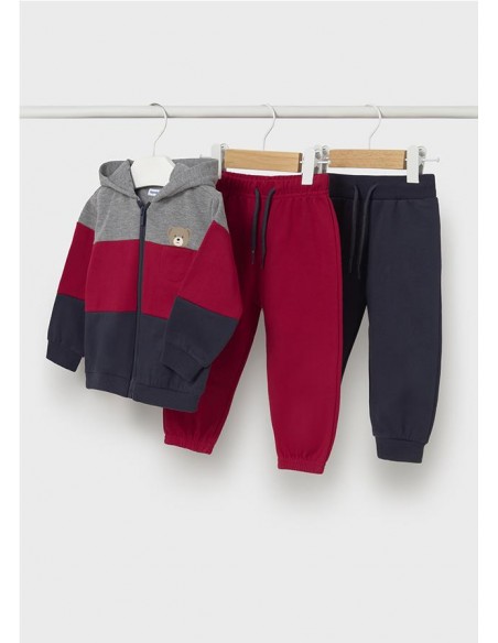 Chándal de tres piezas para bebé compuesto por una sudadera y dos pantalones largos deportivos. Cálido tejido de felpa gruesa (felpa perchada), perfecta para los meses fríos.