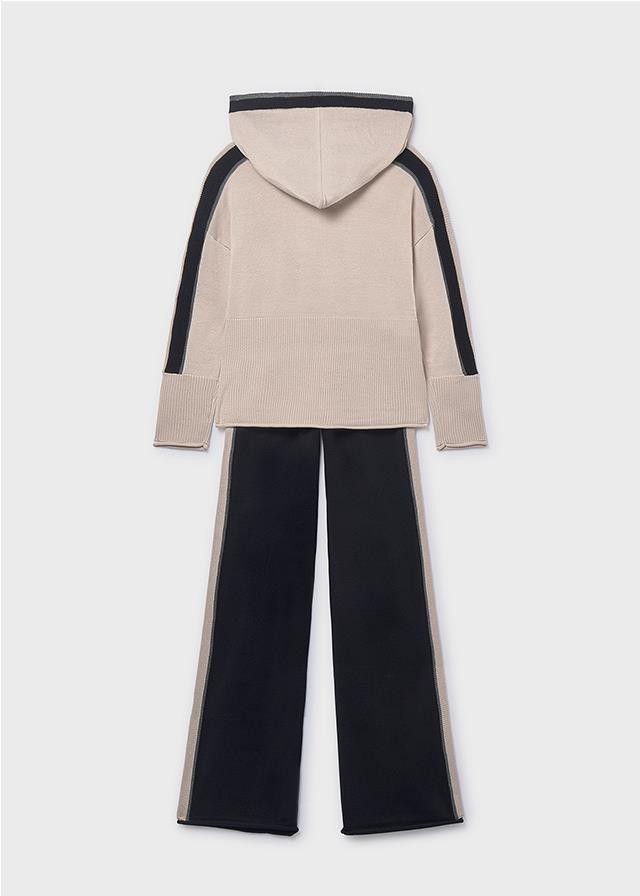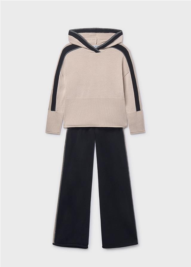 Conjunto de jersey con pantalón largo a juego para chica. Tejido fluido para una máxima comodidad en el día a día. Jersey de manga larga para chica. Cuello con capucha. Elementos de adorno: detalles de color a contraste, detalles de canalé. Pantalón para chica. Cinturilla elástica. Elementos de adorno: detalles de color a contraste.