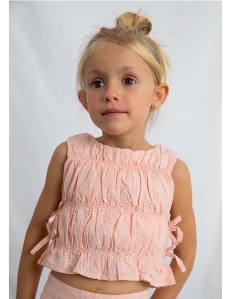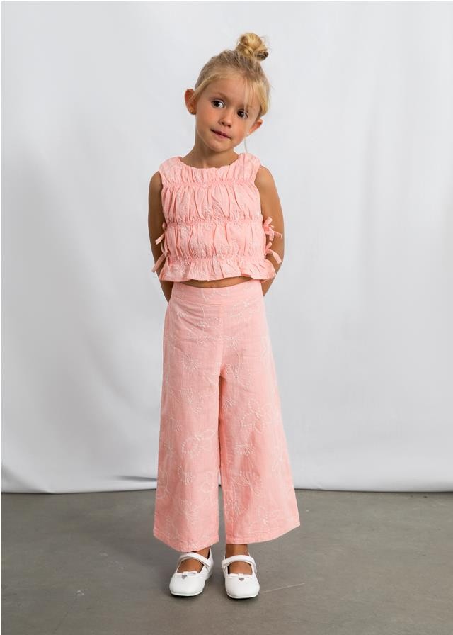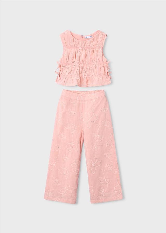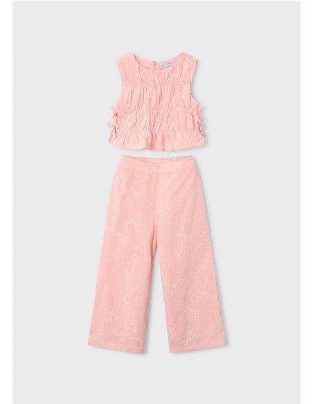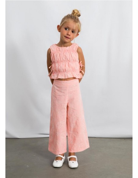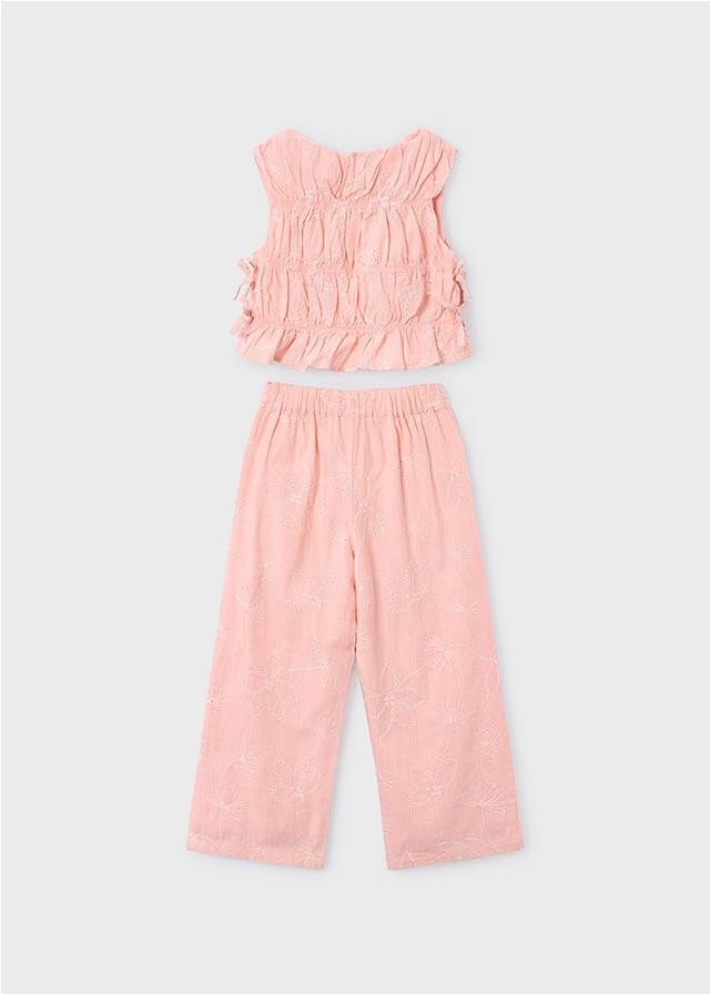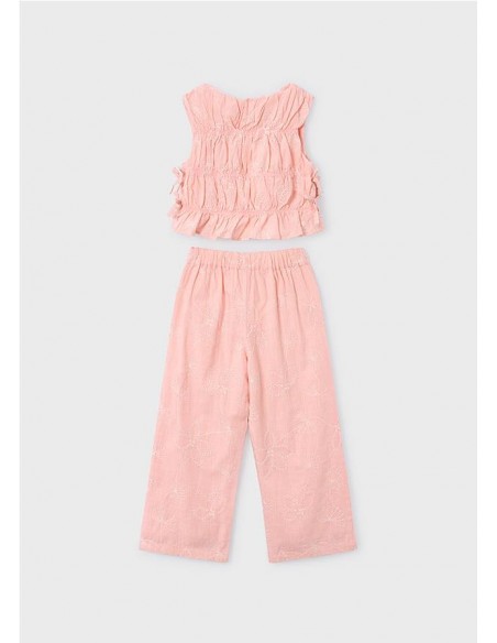 Conjunto pantalón largo y top fruncido para niña