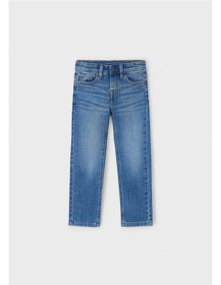 Pantalón largo para niño de corte ajustado (Slim fit). Cierre con cremallera y botón. Goma elástica regulable con botones en el interior de la cinturilla para mayor ajuste. Tejido vaquero cómodo y combinable para los looks diarios. Contiene fornitura sostenible. Diseño con múltiples bolsillos. Efecto lavado obtenido mediante procesos Ecowash de menor impacto ambiental. Modelo perteneciente a nuestra colección Mayoral Basic, una prenda esencial en su armario para completar cualquier look. Por mot