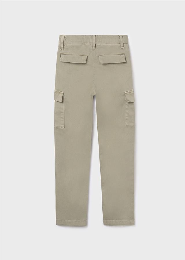 Pantalón largo para chico de tipo chino y corte recto, perfecto para las ocasiones más elegantes. Cierre con cremallera y botón. Goma elástica regulable con botones en el interior de la cinturilla para mayor ajuste. Diseño con múltiples bolsillos.