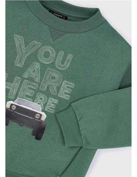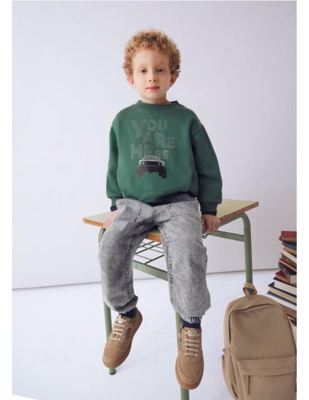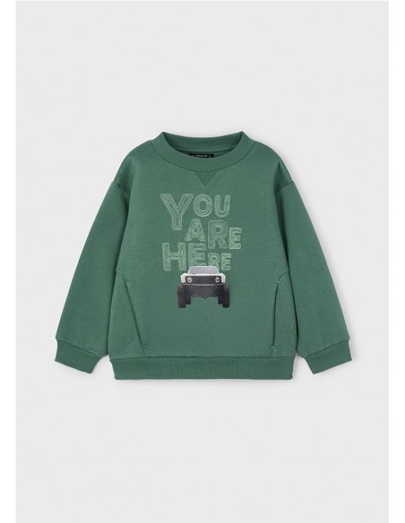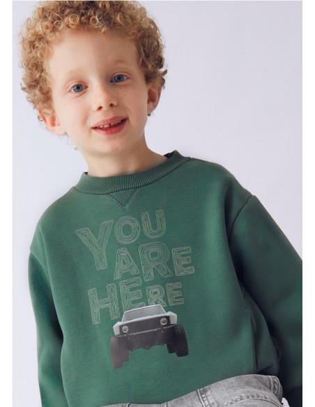 Sudadera de manga larga para niño. Cuello redondo. Bolsillos funcionales en la parte delantera. Elementos de adorno: serigrafía (print). Estampado con motivos del mundo del motor.