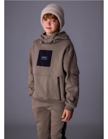 Sudadera de manga larga para chico. Cuello con capucha. Bolsillo lateral. Bolsillos con cremalleras. Elementos de adorno: detalle en relieve (high density print), serigrafía (print).