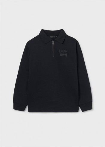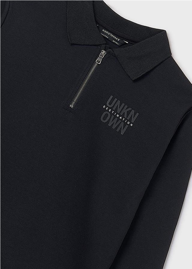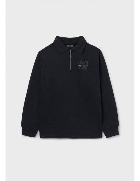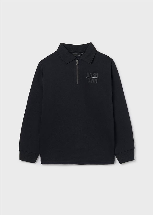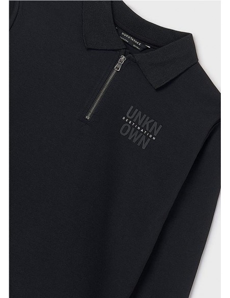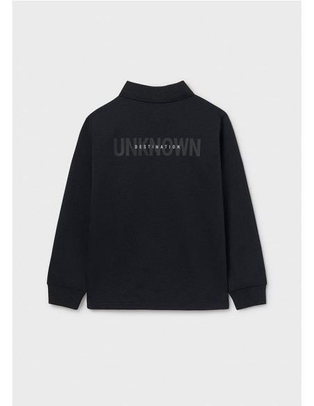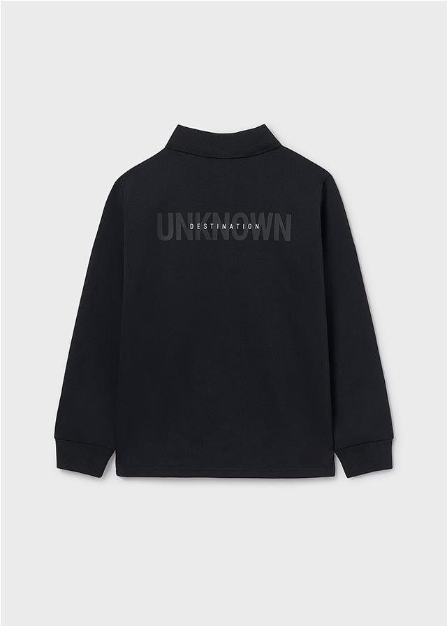 Sudadera de manga larga para chico. Cuello de polo clásico. Elementos de adorno: dibujo en la parte frontal y trasera de la prenda, detalle en relieve (high density print).