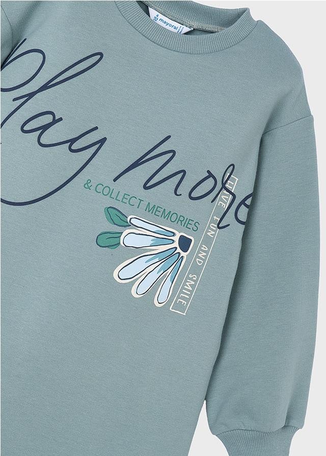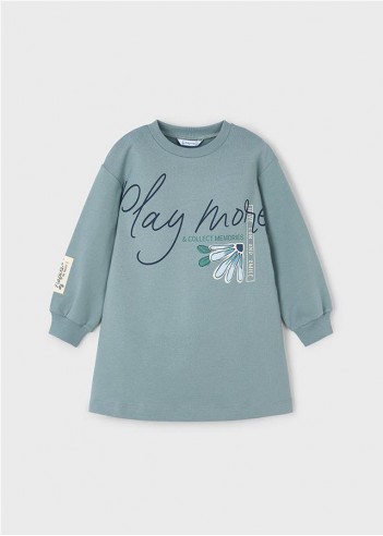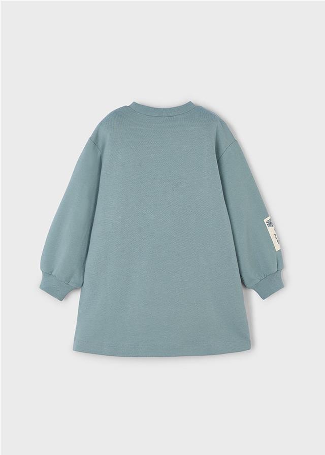 Vestido de manga larga para niña con puños elásticos. Cuello redondo. Suave tejido de algodón elástico. Elementos de adorno: serigrafía (print).